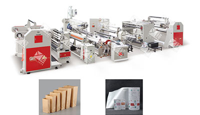 SJFM型雙主機擠出淋膜復(fù)合機組,吸收國外先進技術(shù),是目前國內(nèi)一次完成雙面淋膜工藝的先進機種,設(shè)備用于需要一次生產(chǎn)完成的雙面涂塑紙,或多層的如牛奶盒、果汁盒、飲料盒等復(fù)合材料,是生產(chǎn)無菌包裝材料的理想設(shè)備。